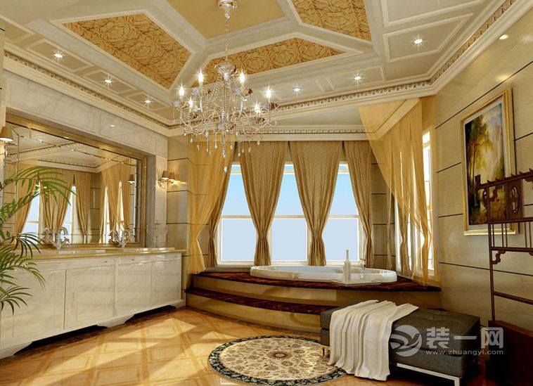 浴池的安装还是要视卫浴间大小来定。长沙装修网设计师为卫浴间设计出超大的浴池,占有卫浴间三分之一的面积。主人足可以舒舒服服的享受泡澡的乐趣。