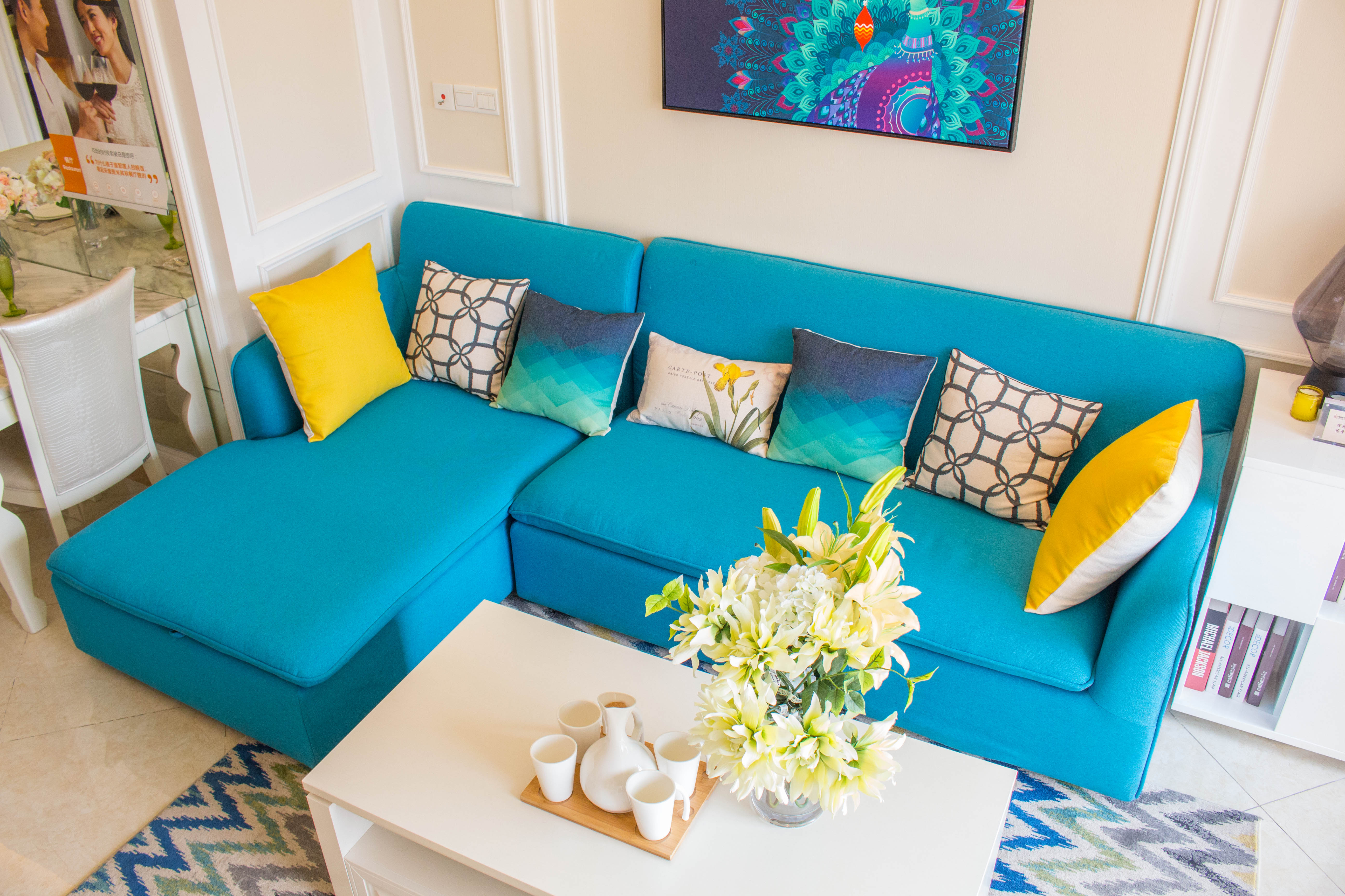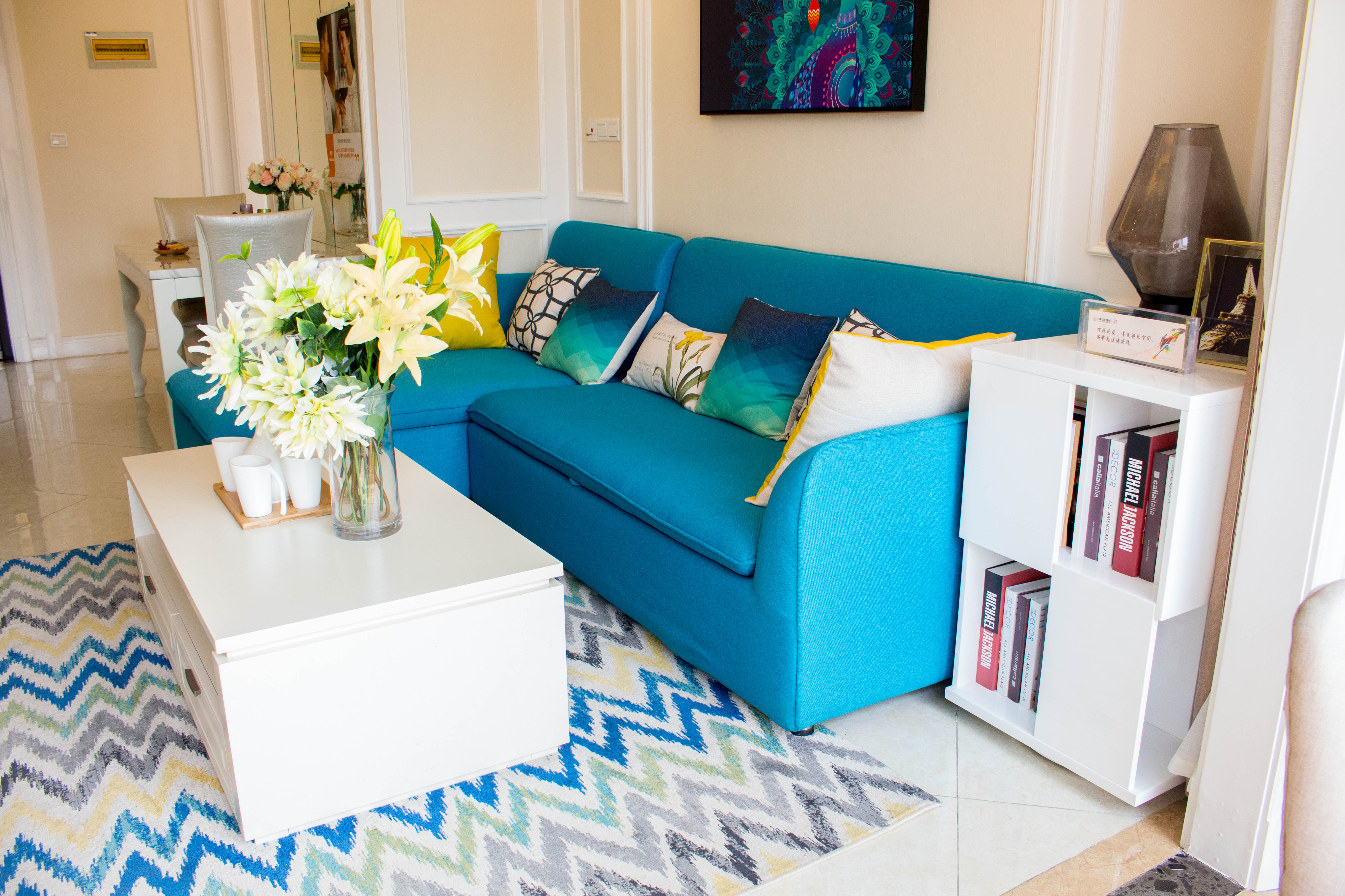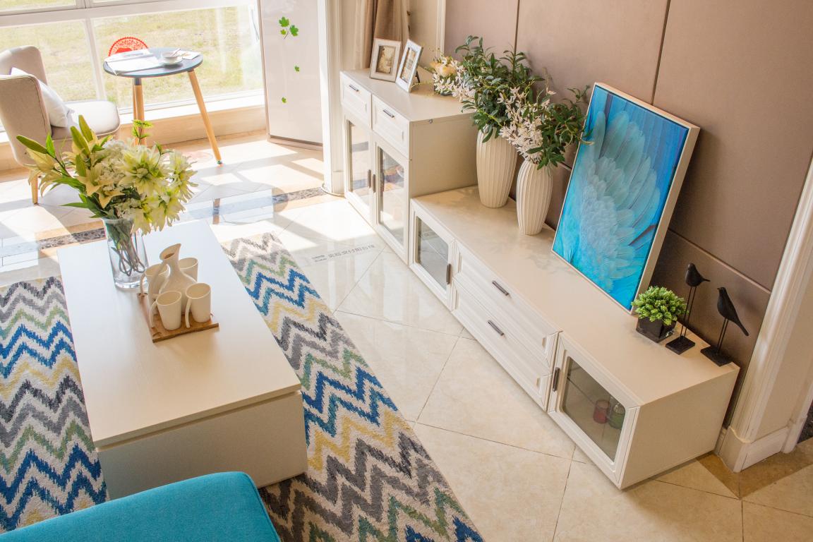 来自69平的小户型客厅,连接一个较大面积的观景阳台,当阳光照射进来,白色的家具会使空间更加明亮,呈现增大空间的视觉效果。
