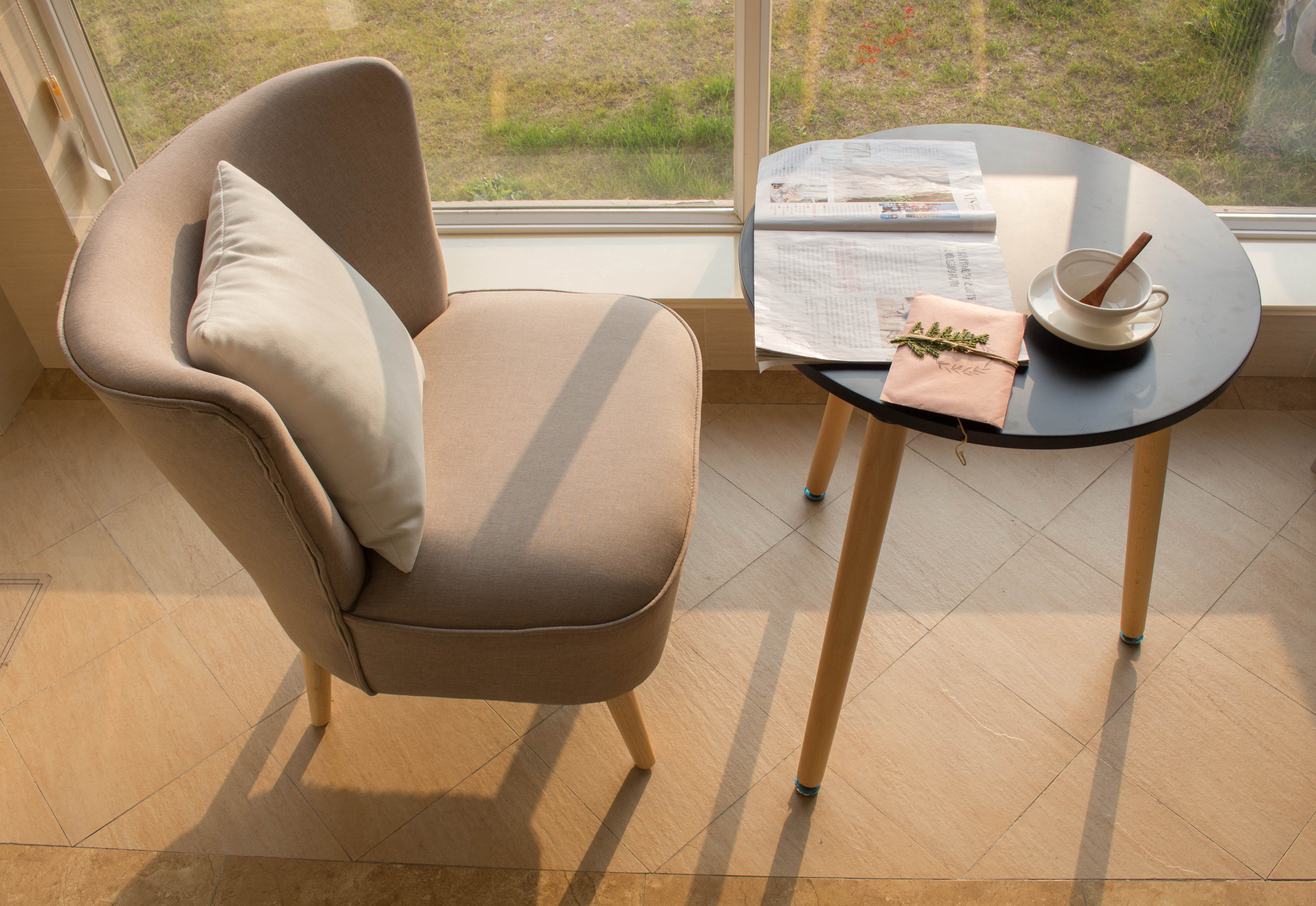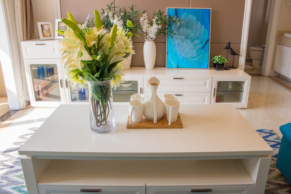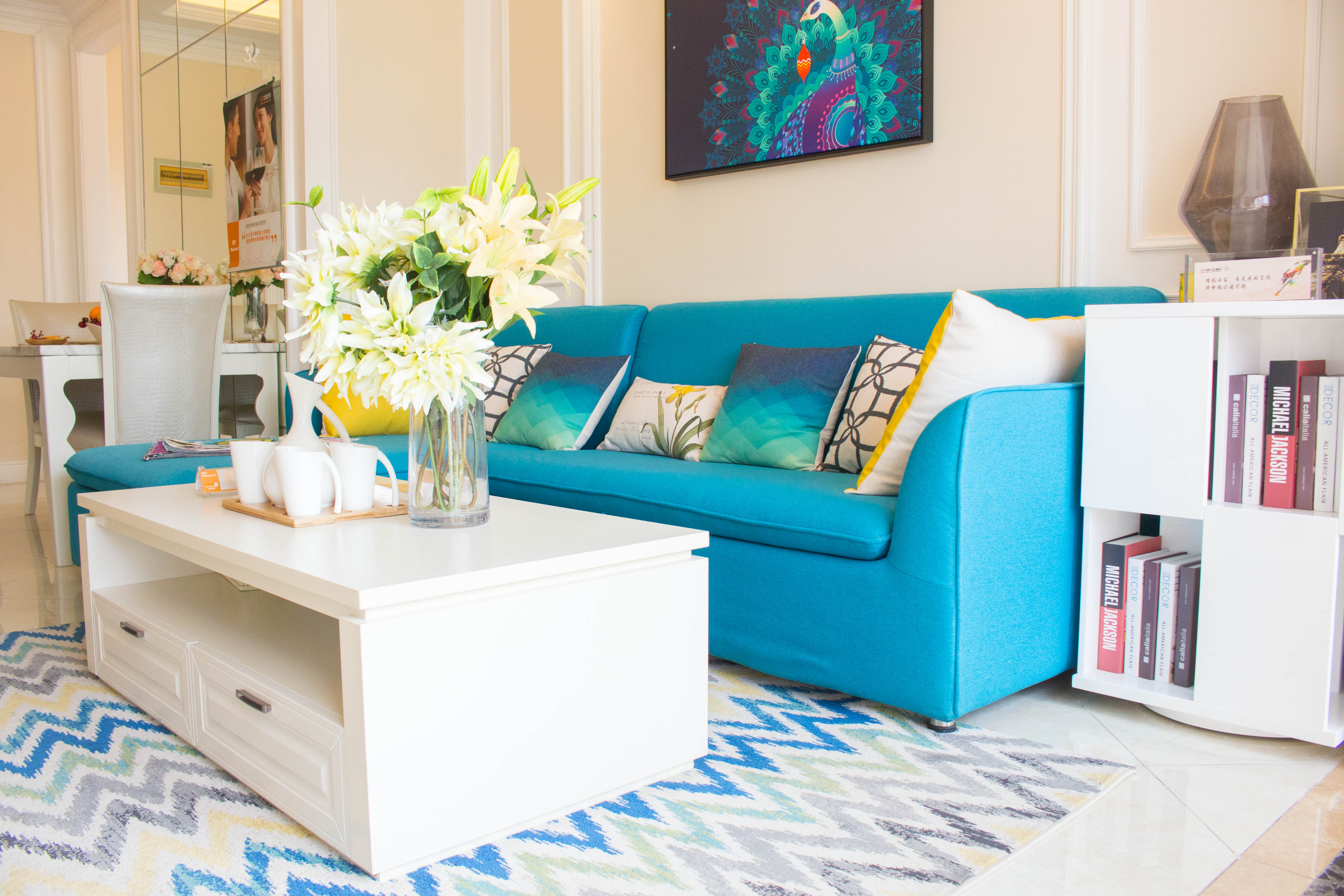 来自69平的小户型客厅,连接一个较大面积的观景阳台,当阳光照射进来,白色的家具会使空间更加明亮,呈现增大空间的视觉效果。
