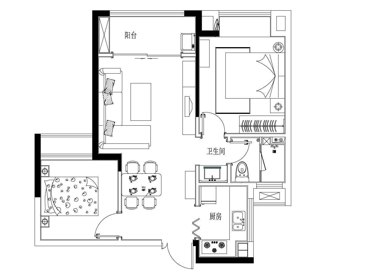 这是一套典型的“婚巢”,户型面积69平米,两室两厅,较为方正规整的户型。业主是刚刚步入婚姻殿堂的年轻人,对美好生活充满向往与憧憬,因此艾佳的软装方案也洋溢着青春时尚的气息。
