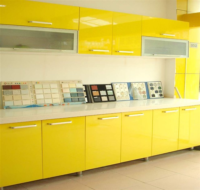 烤漆板是木工材料的一种。它是以密度板为基材,表面经过六至九次打磨(不一样的厂家次数不同,次数越多工艺要求越高,成本也就越高)、上底漆、烘干、抛光(三底、二面、一光)高温烤制而成。目前主要用于橱柜、房门等。烤漆板可分亮光、亚光及金属烤漆三种。目前有最新的雕刻烤漆板、纽卡家居烤漆板等。 -