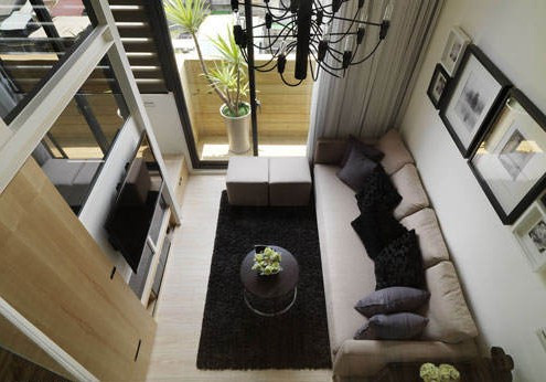 虽然只有小巧的十三坪,但如果格局规划得当,空间还是很充足!夹层下方以开放式格局为主,在小空间创造绝佳的大视野;即使建案本身的采光面受限,因为没 有不必要的隔间墙,所以客厅也不会显得太阴暗。
