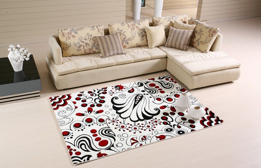 3、地毯上的图案千变万化,题材包罗万有,有些是以动物为主,有些是以人物为主,有些是以风景为主,有些则纯粹以图案构成。地毯的花形可以按家具的款式来配套,使用红木或仿红木的家具,一般选用线条排比对称的规则式花形,显得古朴、典雅;使用组合式家具或新式家具,而选购不规则图案的地毯,会让人感到清新、洒脱。